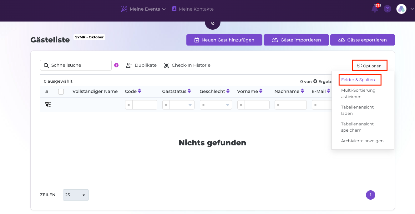 Sie können die Reihenfolge der Optionen (z. B. Auswahlfelder) anpassen, um das Registrierungsformular für Ihre Gäste intuitiver zu gestalten.