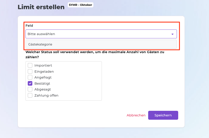 Limits wirken sich auf die in Ihrem Event angelegten Felder aus. Konkret auf Auswahl- und Mehrfachauswahlfelder.